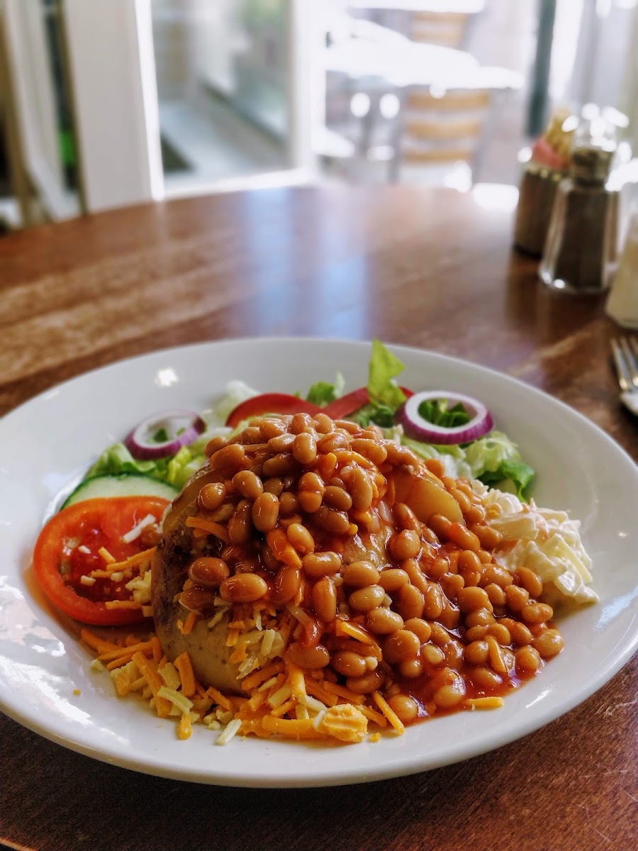 If you arrive hungry in the morning, the Full English Breakfast is a standout option. It’s hearty without feeling heavy and gives you that classic comfort you expect from a British café breakfast. Everything arrives freshly prepared, and the portions feel satisfying without being overwhelming. For something a little lighter but still filling, the Jacket Potato with Cheese and Baked Beans works beautifully. The fluffy potato paired with melted cheese and rich baked beans creates a simple but comforting dish that fits perfectly into a relaxed café lunch.